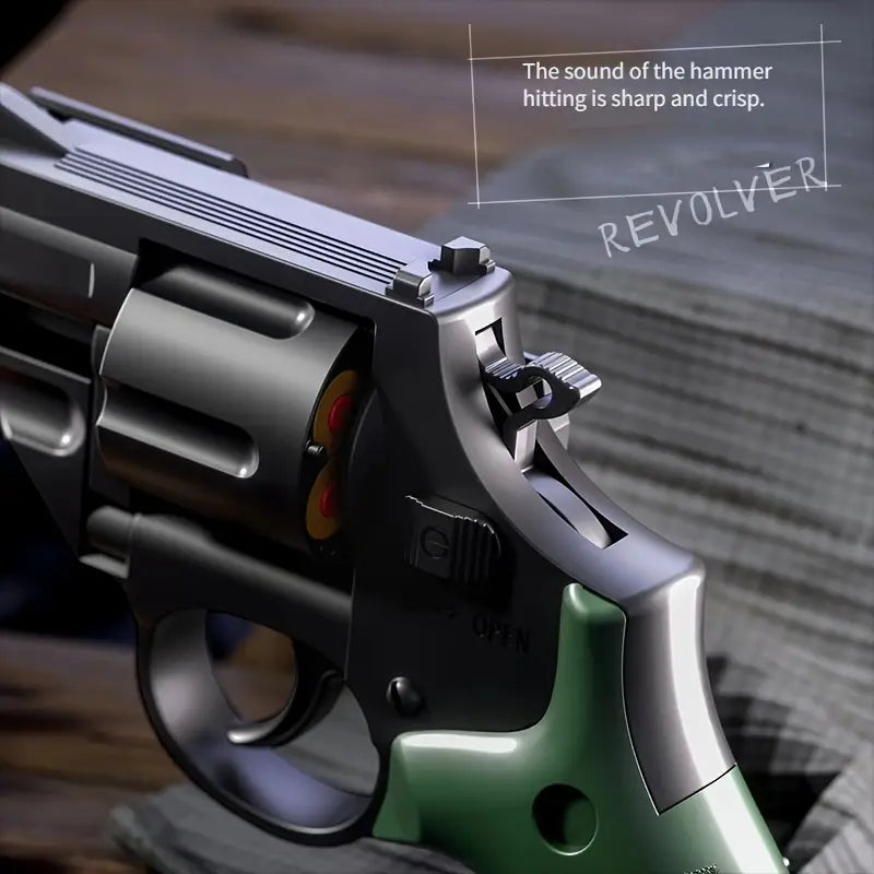 357 Revolver - Your choice of short or long barrel with 3 color options (Wood & Black, Green & Black or Gray & White) Semi-Automatic (Comes with 6 casings & 12 bullets)