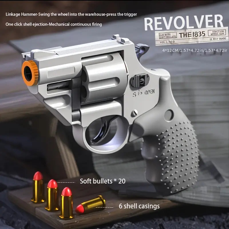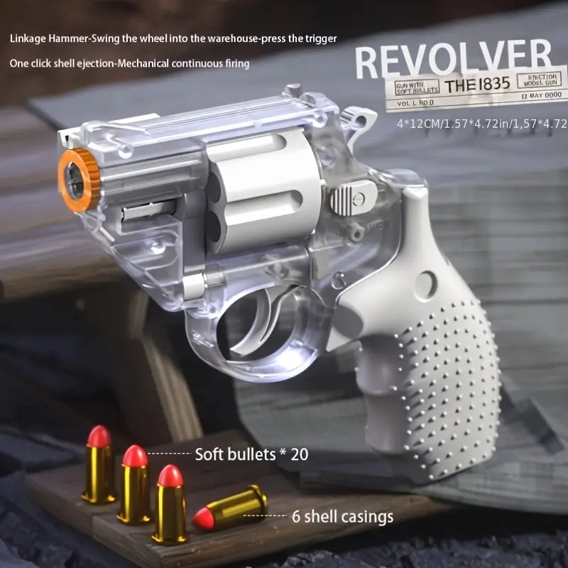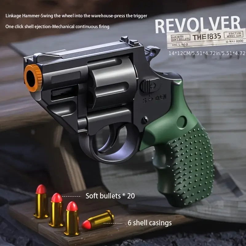 1835 (Mini) Revolver - Short barrel Semi-Automatic Chamber opens to the left Your choice of 3 colors (Green & Black, Gray & White or Gray & Clear) (Comes with 6 casings & 20 bullets)